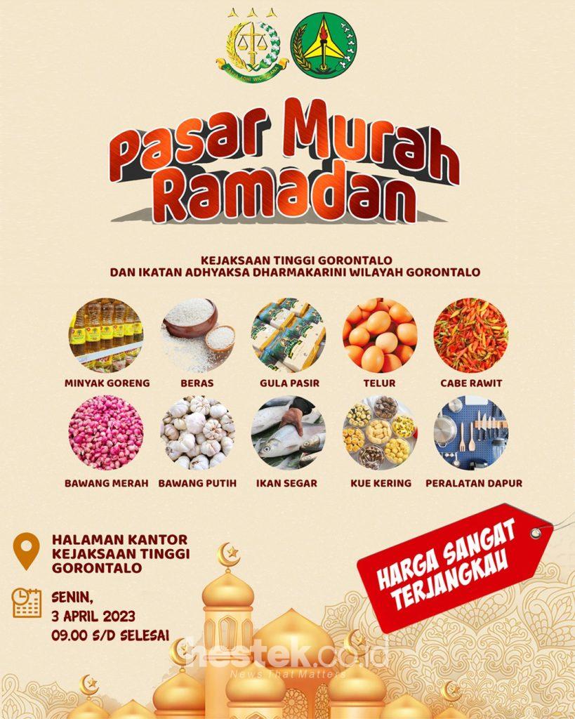 Ia menjelaskan, Pasar Murah Ramadan Kejati Gorontalo akan dilaksanakan pada hari Senin Tanggal 3 April tahun 2023 dan dimulai dari pukul 9.00 WITA sampai selesai.