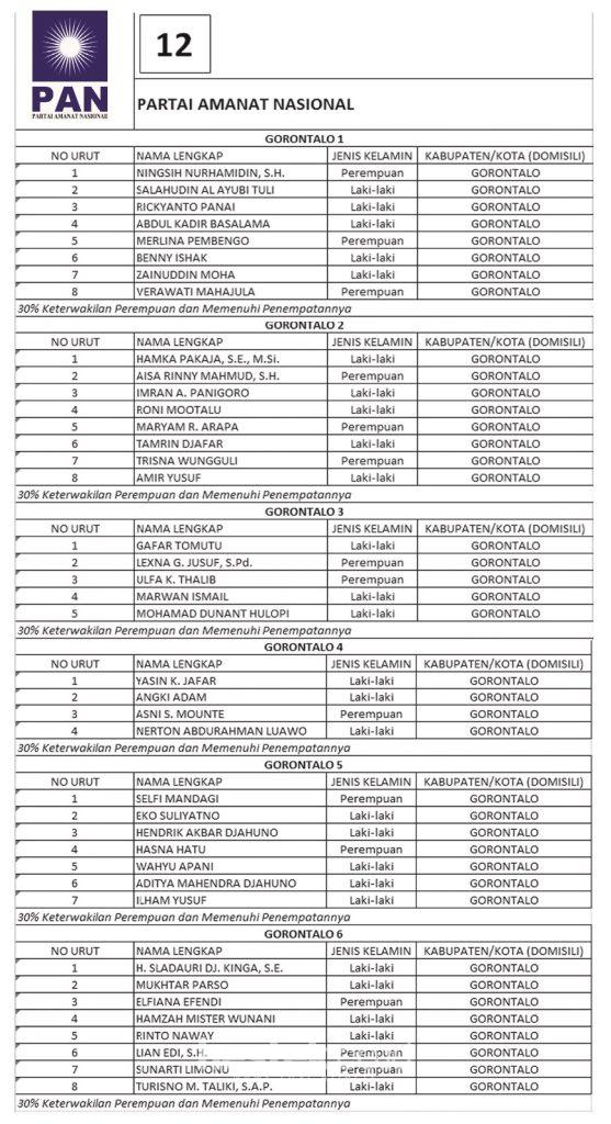 HESTEK.CO.ID – Komisi Pemilihan Umum (KPU) Kabupaten Gorontalo telah menetapkan daftar calon tetap (DCT) anggota DPRD Kabupaten Gorontalo dari Partai Amanat Nasional (PAN).