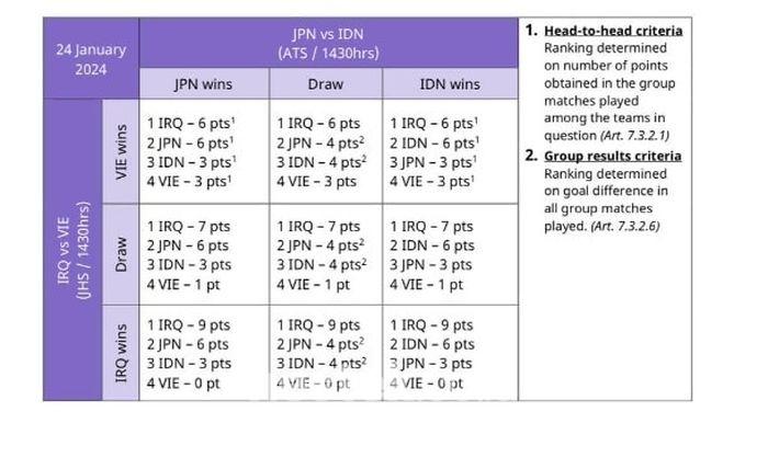 Jadi, apapun hasil laga Irak vs Vietnam tidak akan berpengaruh bagi timnas Indonesia dan Jepang.