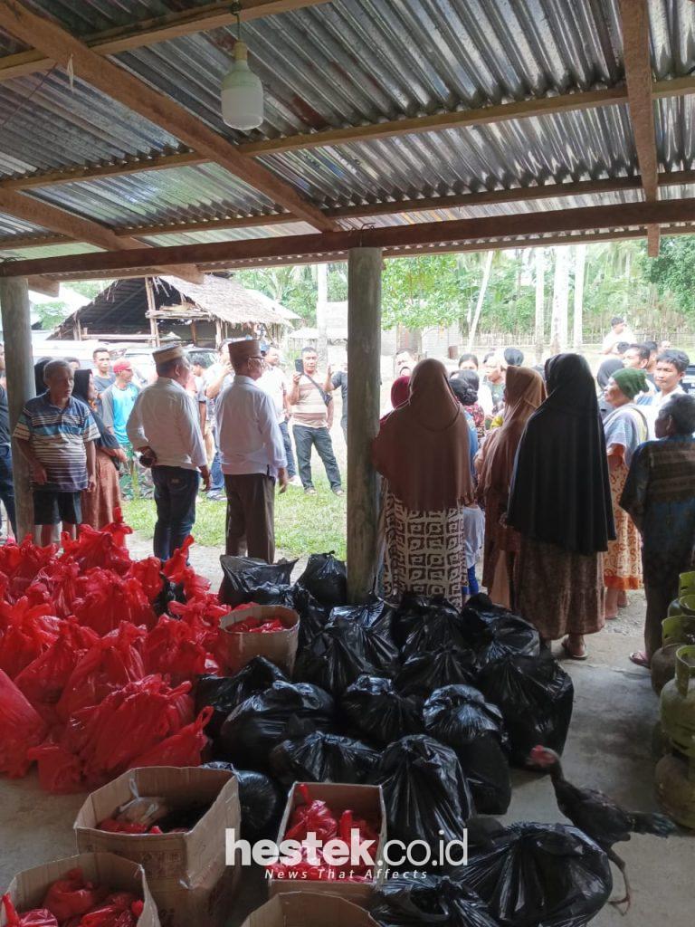 Setiap keluarga menerima paket bantuan yang berisi 5 kg beras, 1 liter minyak goreng, 10 bungkus mie instan, dan 10 butir telur.