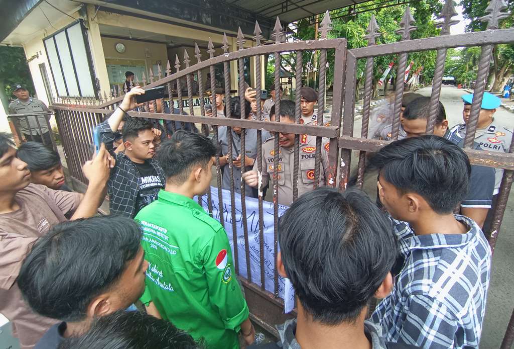 HESTEK.CO.ID – Sejumlah mahasiswa yang tergabung dalam Gerakan Mahasiswa Menuntut Perubahan (GMMP) menggelar aksi demonstrasi di Markas Kepolisian Daerah (Mapolda) Gorontalo, Kamis (24/04/2025).