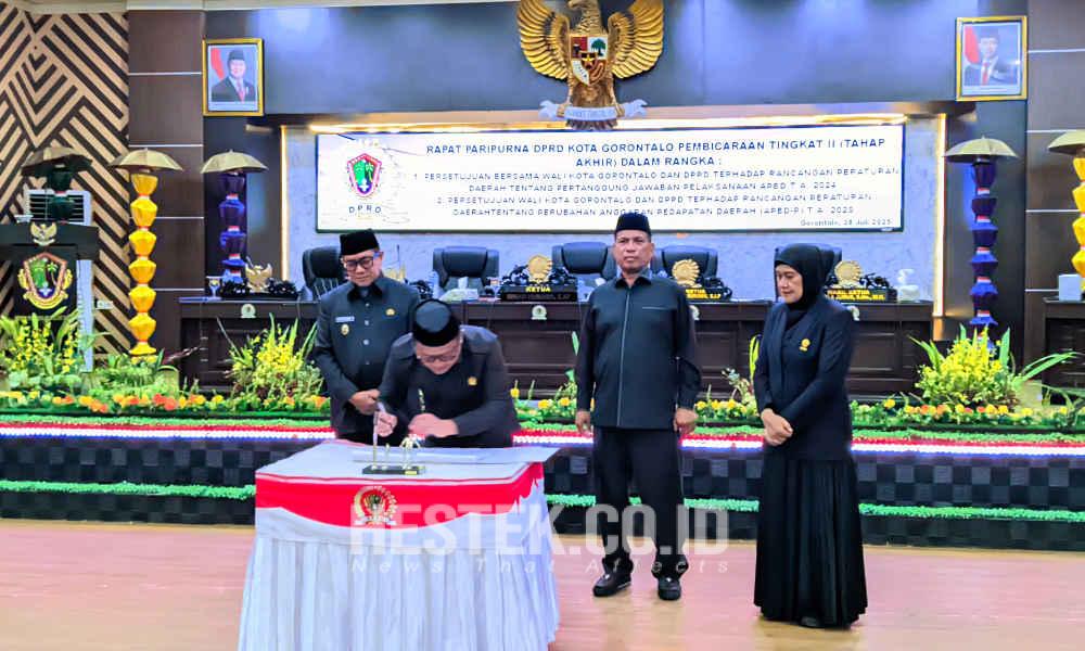 HESTEK.CO.ID – Dewan Perwakilan Rakyat Daerah (DPRD) Kota Gorontalo bersama Wali Kota dan Wakil Wali Kota Gorontalo resmi menyetujui Rancangan Peraturan Daerah (Ranperda) tentang Perubahan Anggaran Pendapatan dan Belanja Daerah (APBD-P) Tahun Anggaran 2025.
