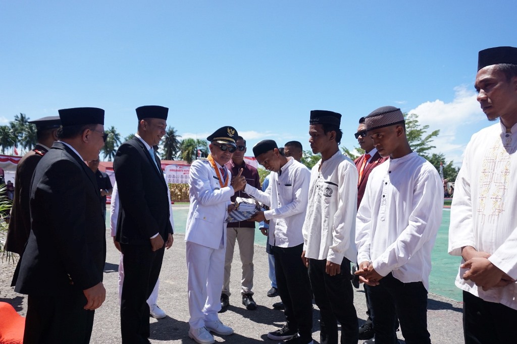 Penyerahan remisi dilakukan secara simbolis oleh Bupati Pohuwato, Saipul A. Mbuinga, seusai upacara pengibaran bendera merah putih di Alun-Alun Pohuwato, Minggu (17/8/2025).