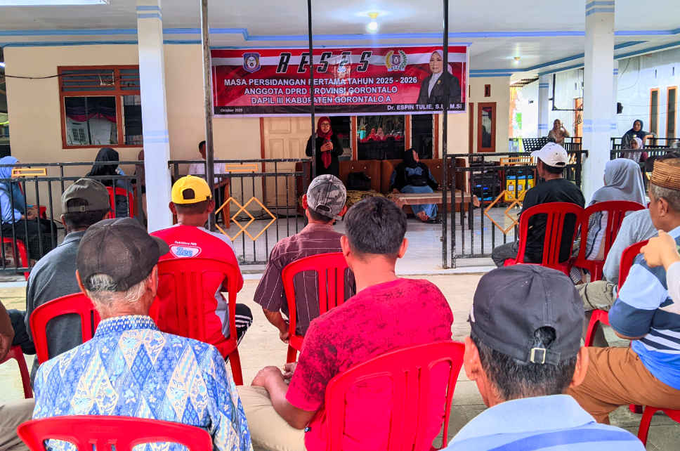 HESTEK.CO.ID – Anggota DPRD Provinsi Gorontalo dari Daerah Pemilihan (Dapil) III Gorontalo A, Dr. Espin Tulie, melaksanakan reses masa persidangan pertama tahun 2025–2026 di Kelurahan Hunggaluwa, Kecamatan Limboto, Kabupaten Gorontalo, pada Jumat (24/10/2025).
