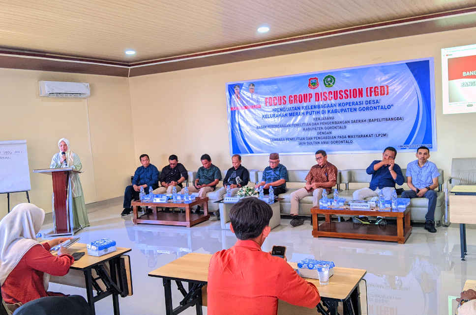 HESTEK.CO.ID – Badan Perencanaan, Penelitian, dan Pengembangan Daerah (Bapelitbangda) Kabupaten Gorontalo bersama Lembaga Penelitian dan Pengabdian kepada Masyarakat (LP2M) IAIN Sultan Amai Gorontalo menggelar Focus Group Discussion (FGD) bertema “Penguatan Kelembagaan Koperasi Desa/Kelurahan Merah Putih di Kabupaten Gorontalo”, Sabtu (25/10/2025).