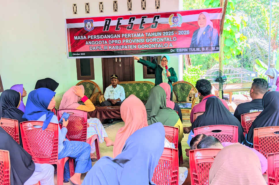 HESTEK.CO.ID — Anggota DPRD Provinsi Gorontalo dari Daerah Pemilihan (Dapil) III Gorontalo A, Dr. Espin Tulie, melaksanakan reses masa persidangan pertama tahun 2025–2026 di Desa Modelidu, Kecamatan Telaga Biru, Kabupaten Gorontalo, pada Rabu (29/10/2025).