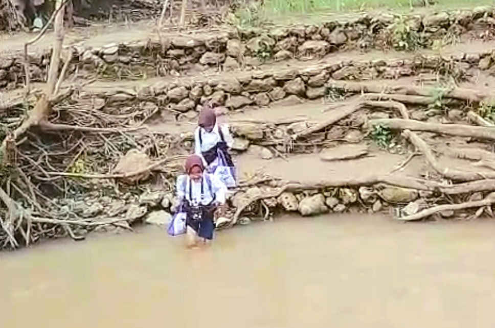 “Semoga pemerintah bisa segera memperbaikinya. Kasihan anak-anak kalau setiap hari harus menyeberangi sungai,” tuturnya.