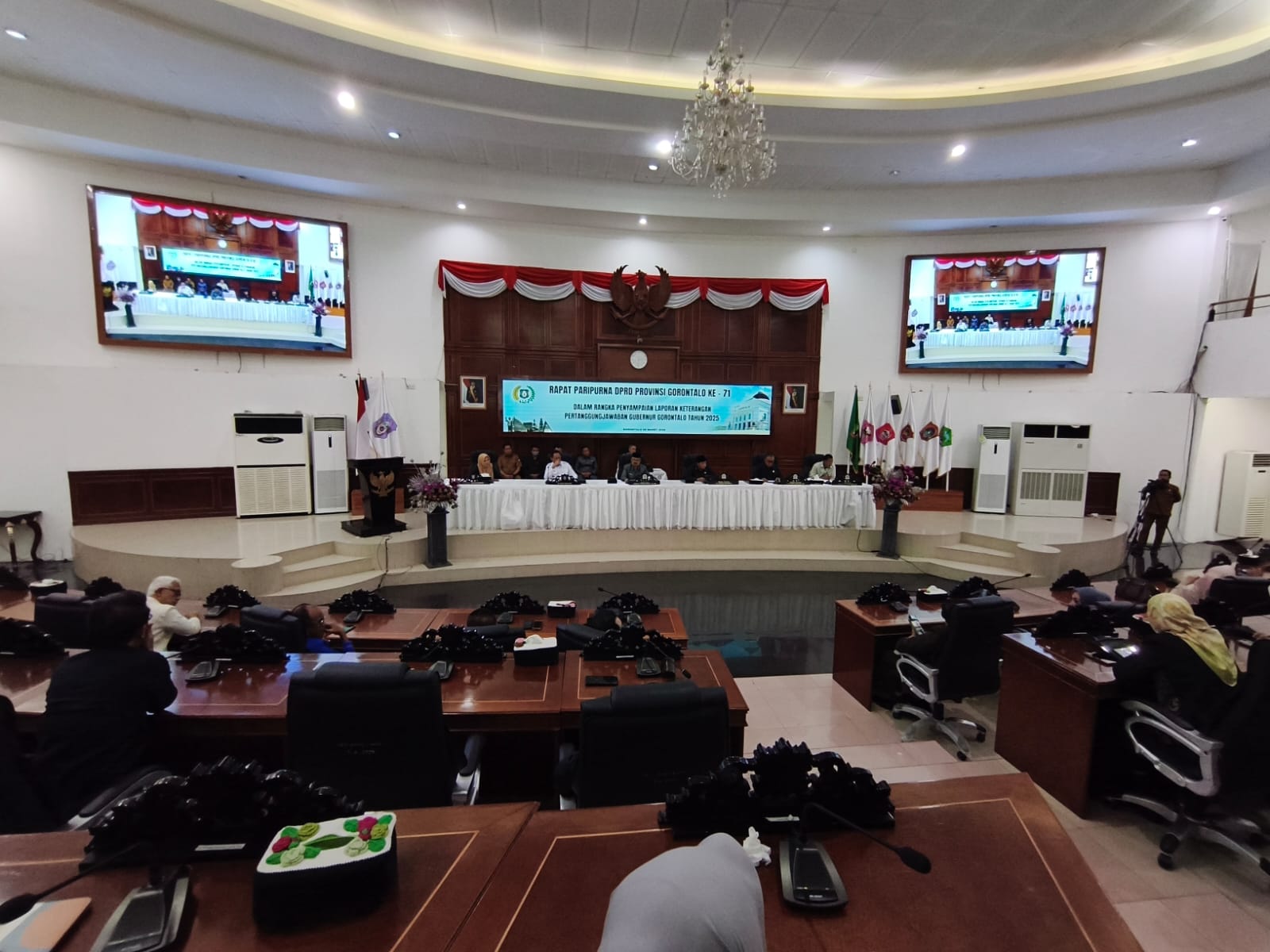 Rapat berlangsung di ruang sidang DPRD Provinsi Gorontalo dan dipimpin oleh pimpinan DPRD, serta dihadiri anggota dewan, unsur Forum Koordinasi Pimpinan Daerah (Forkopimda), dan jajaran Pemerintah Provinsi Gorontalo.