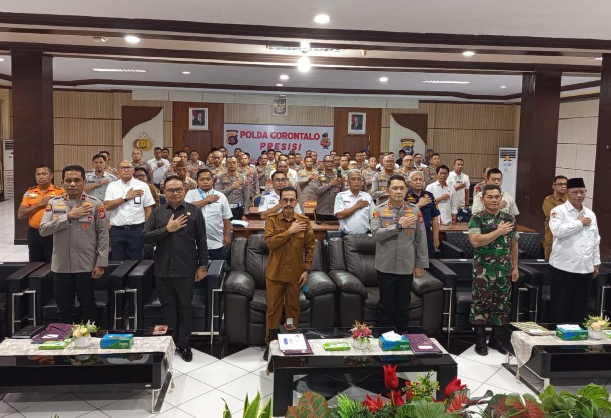 Kegiatan tersebut dipimpin langsung oleh Kapolda Gorontalo dan dihadiri unsur Forum Koordinasi Pimpinan Daerah (Forkopimda), pimpinan instansi vertikal maupun daerah.