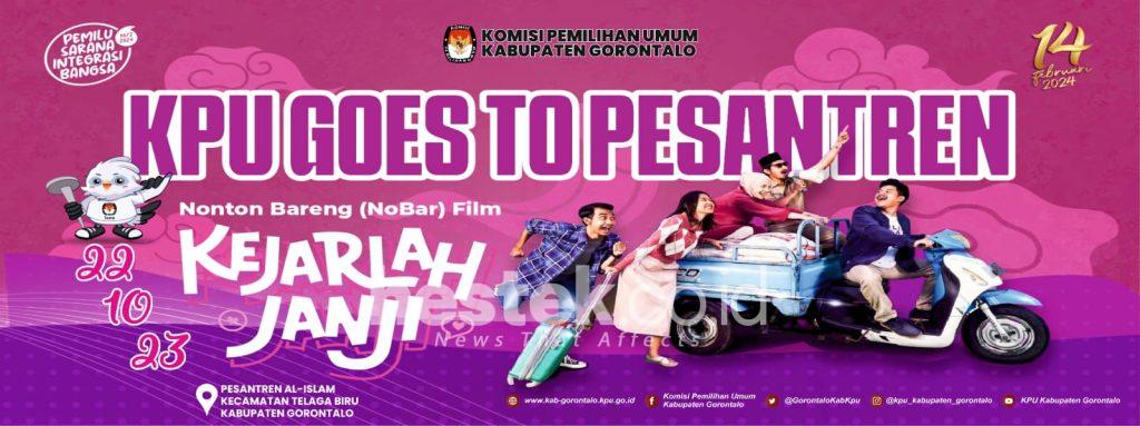 HESTEK.CO.ID – Komisi Pemilihan Umum (KPU) Kabupaten Gorontalo menggelar nonton bareng (nobar) film “Kejarlah Janji” sebagai salah satu upaya utnuk memberikan sosialisasi dan pendidikan politik kepada pemilih pemula di Pesantren Al-Islam Gorontalo, Minggu (22/10/2023).
